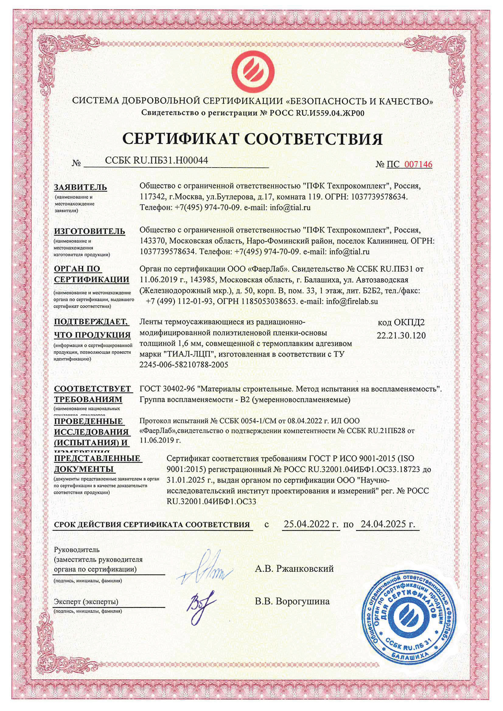 Сертификат пожарной безопасности ТИАЛ-ЛЦП